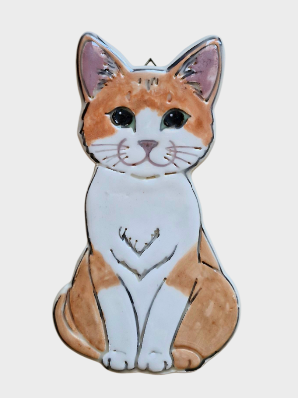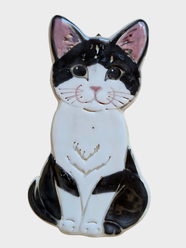 Colgantes tipo cuadro con ilustraciones de gatitos en distintos colores y expresiones. Cada pieza es única, modelada y esmaltada a mano.