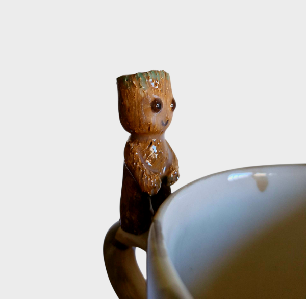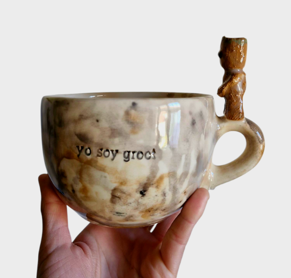 Taza de cerámica inspirada en Groot, el personaje más tierno del universo Marvel. Hecha y esmaltada a mano, con detalles que la hacen única. Ideal para fans de Guardianes de la Galaxia o para quienes aman las piezas originales de colección
